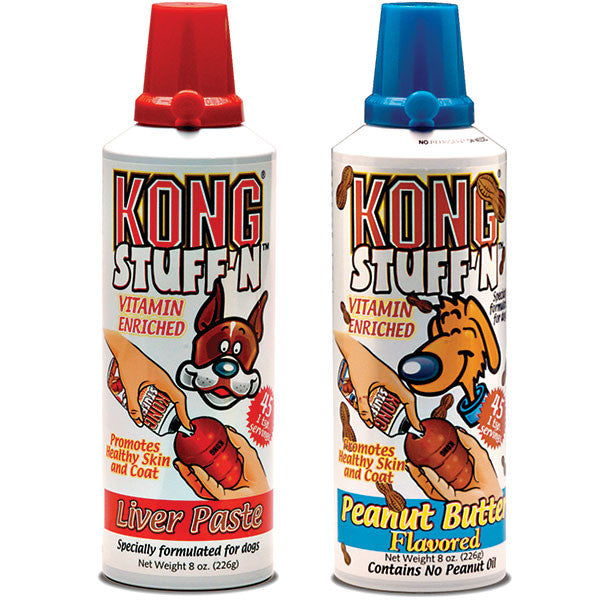 KONG® Stuff 'N® Paste is a vitamin enriched, flavorful paste that is great for stuffing a Kong, Havaball, Dental Stick or Jump'n Jack. Available in Peanut Butter and Liver, each eight ounce can contains enough paste for 45, 1 teaspoon servings. No refrigeration is needed once the can is open.