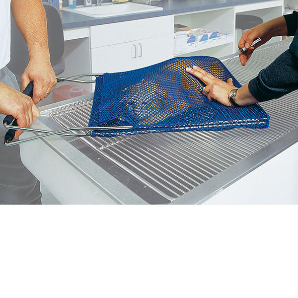 If the EZ-Nabber net becomes soiled, don't worry, it's washable! Just leave it on the frame and wash in a tub with soap and water, add some chlorhexidine or your preferred disinfectant if necessary.